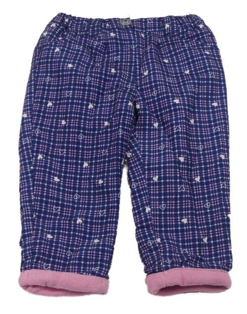 Tmavomodro-ružové kockované šušťákové zateplené nohavice so srdiečkami Ergee