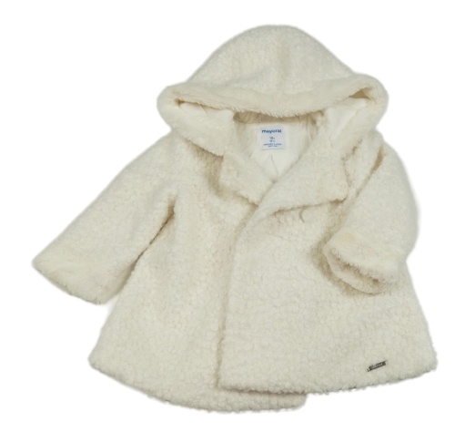 Smotanový huňatý podšitý kabát s kapucňou Mayoral