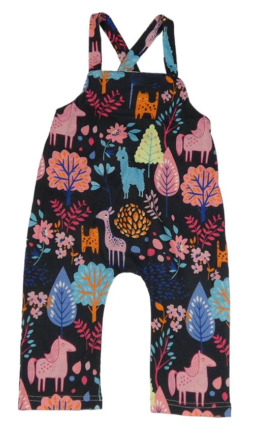 Čierne teplákové na traké turecké nohavice so zvieratkami a stromčekmi
