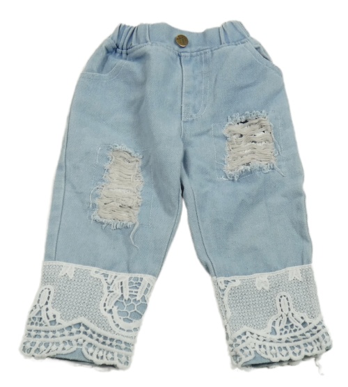 Svetlomodré rifle s vyšúchaním a čipkou