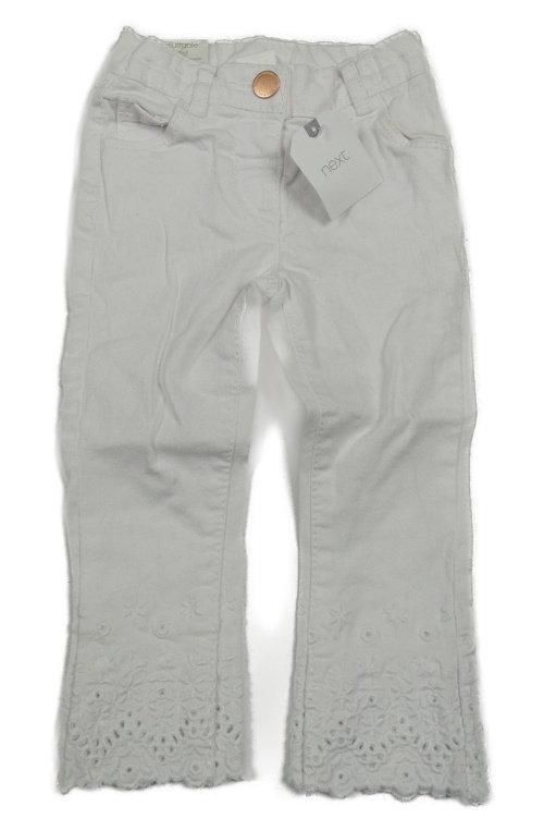 Nové - biele skinny rifle s kvetmi a madeirou Next