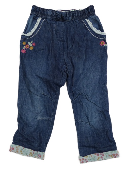 Tmavomodré podšité rifle s výšivkami květin Matalan