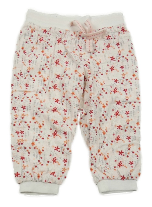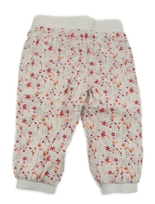 Bielo-červeno-sivo-ružové kvetované podšité cuff manšestráky s úpletovým pasom