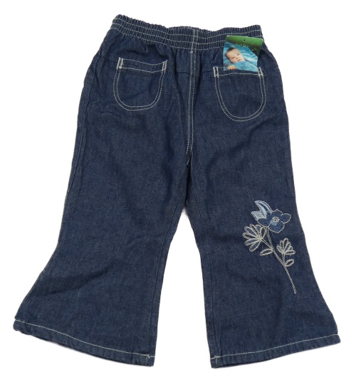 Nové - Tmavomodré podšité rifle s výšivkou kvetiny