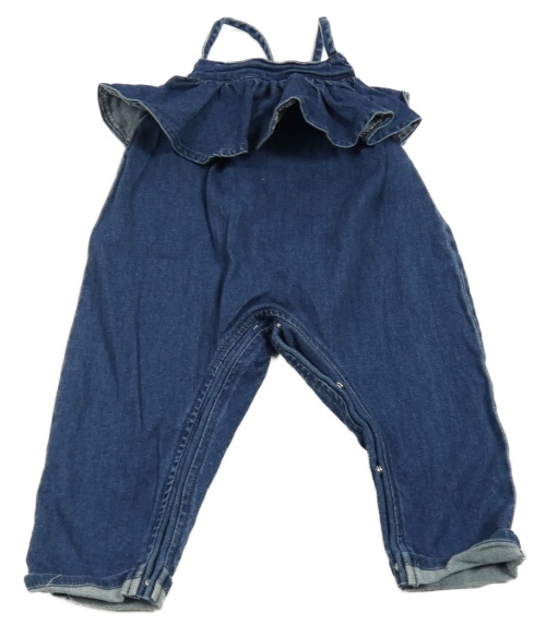 Tmavomodrý rifľový nohavicový overal s volánikom Next