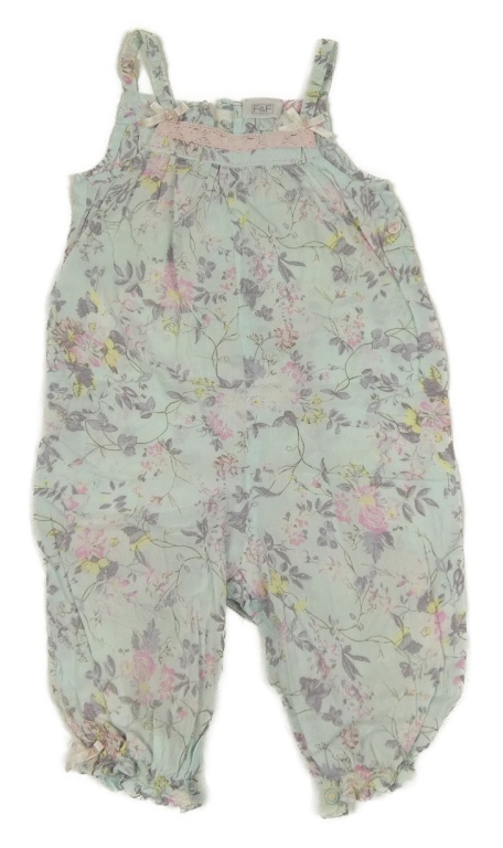 Mátový nohavicový overal s kvietkami a čipkou a mašľami F&F
