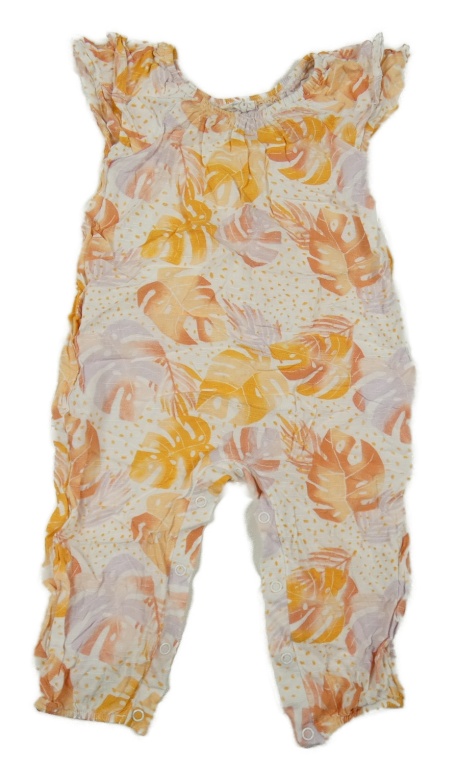 Bielo-žlto-korálový ľahký nohavicový overal s listami Primark