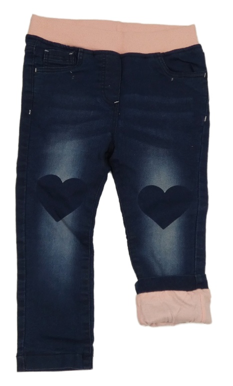 Tmavomodro-ružové teplákové podšité rifle so srdiečkami DopoDopo