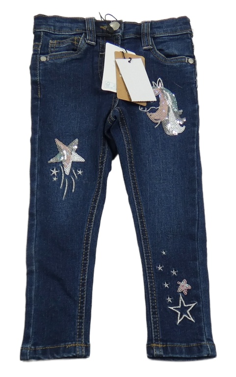 Nové - tmavomodré skinny teplákové rifle s jednorožcom s flitrami a hviezdičkami M&Co