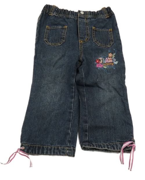 Tmavomodré rifle s nápismi a kvetmi Prémaman