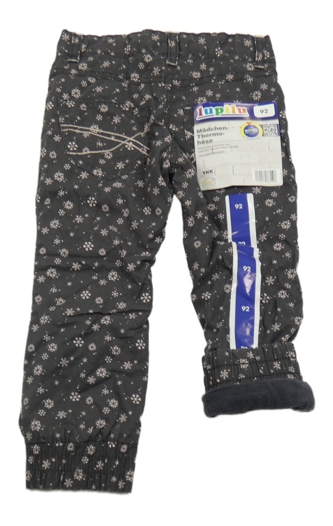 Nové - Tmavosivé plátenné zateplené nohavice s vločkami Lupilu