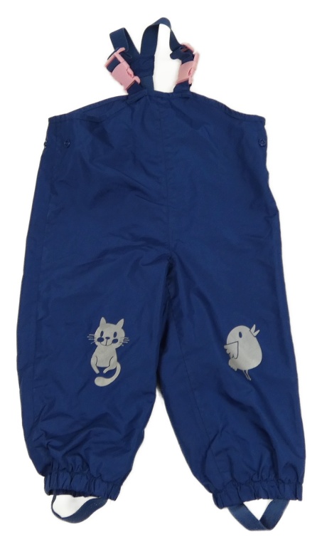 Tmavomodré šušťákové podšité na traké nohavice s vtáčikom a mačkou Pocopiano