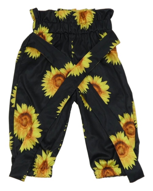 Čierne saténové turecké nohavice so slunečnicemi a opaskom