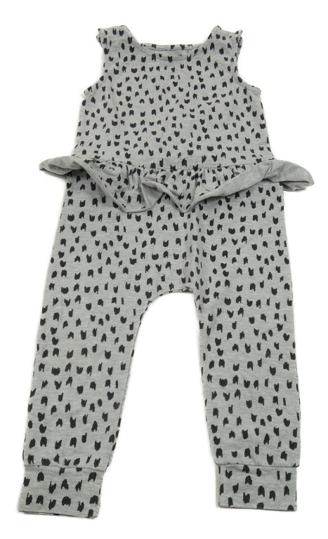 Sivý melírovaný vzorovaný bavlnený nohavicový overal s volánem My K