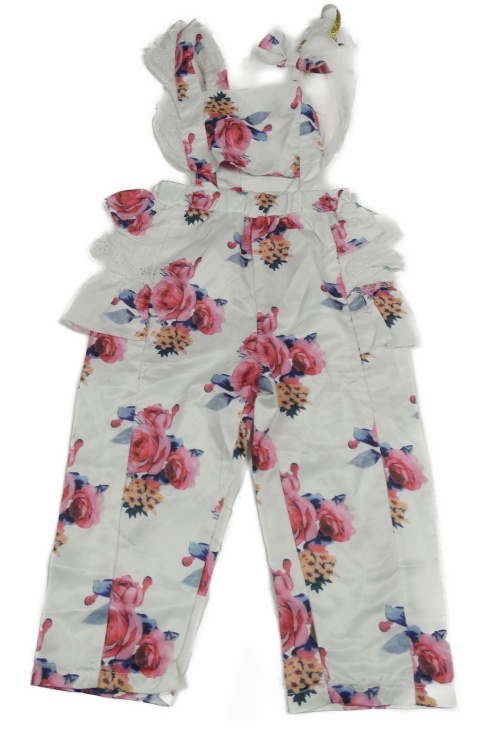 Biele saténové nohavice s růžemi a volánikmi a madeirou a trakami