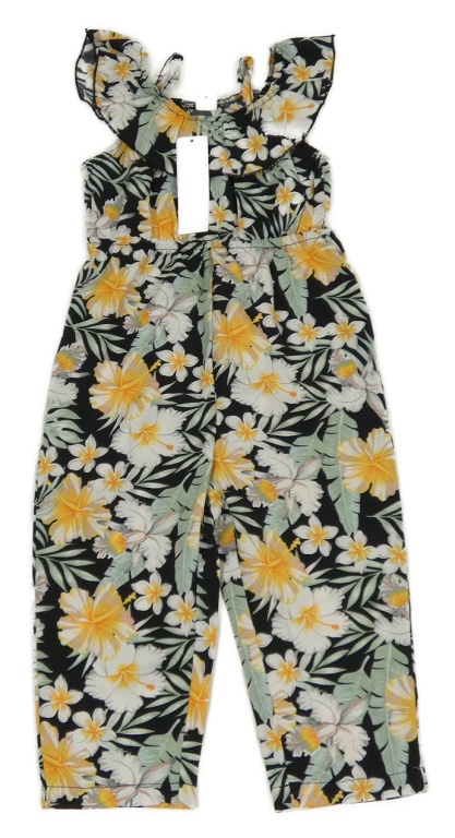 Nové - čierno-žlto-biely kvetovaný ľahký nohavicový overal Shein