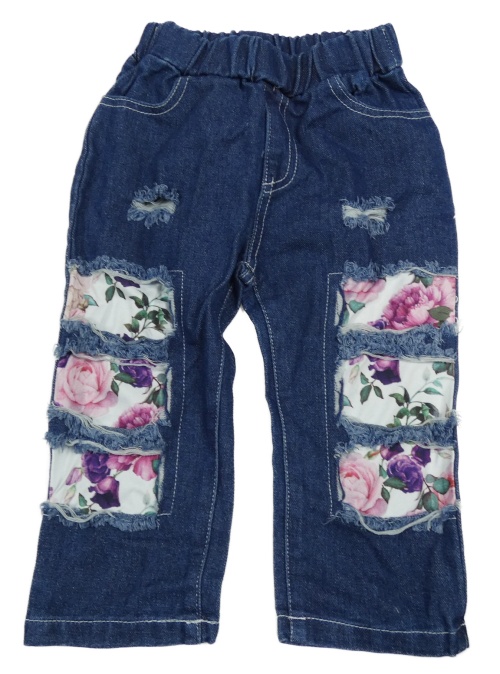 Tmavomodré rifle s růžemi a vyšúchaním