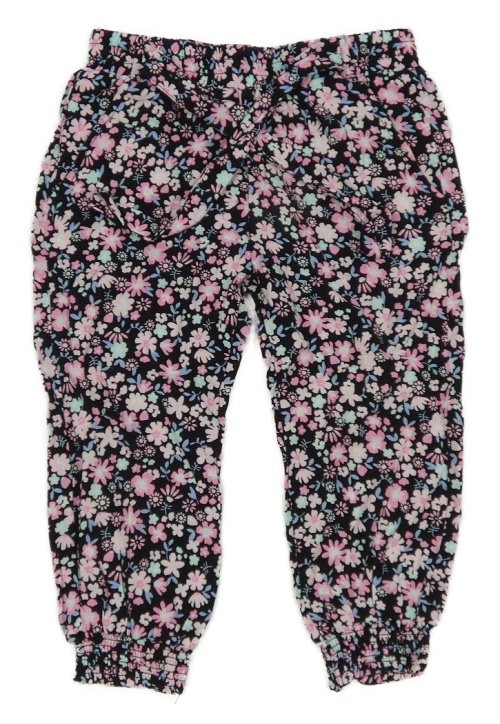 Čierno-ružové kvetované ľahké nohavice s opaskom Primark
