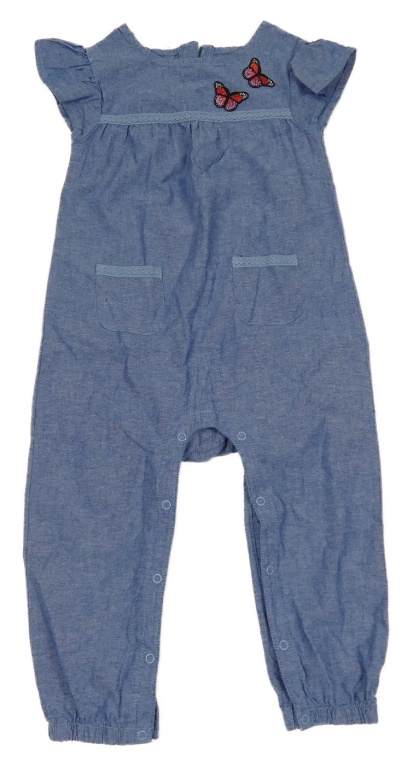 Modrý ľahký nohavicový overal s motýlikmi a volánikmi Lupilu