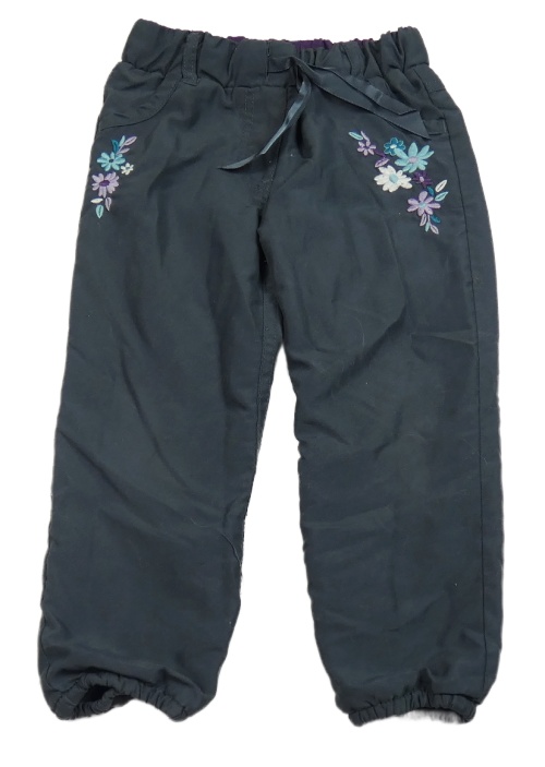 Tmavosivé šušťákové podšité nohavice s kvietkami Topolino