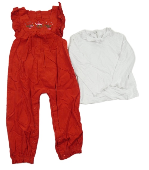 2set - Červený menšestrový nohavicový overal s ptáčky + biele tričko s golierikom Dunnes