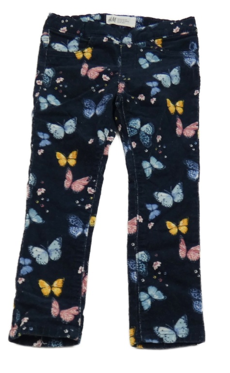 Tmavomodré menšestrové elastické nohavice s motýly H&M