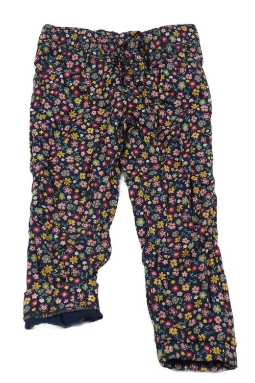 Tmavomodré kvietkovane cuff plátenné podšité nohavice Kiki&Koko