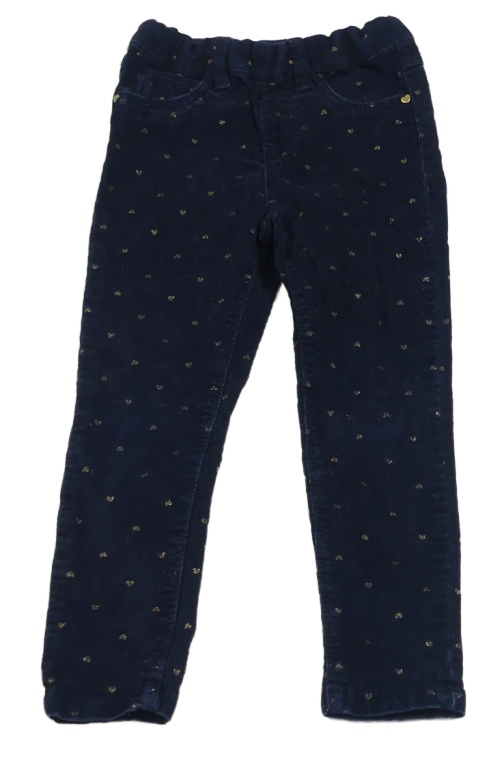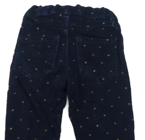 Tmavomodré elastické manšestráky so zlatými srdiečkami