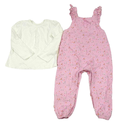 2set - Ružové kvetované menšestrové na traké nohavice s volánky + biele tričko Dunnes