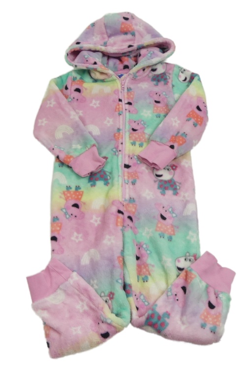Ružovo-zelená plyšová kombinéza s Peppou a kapucňou