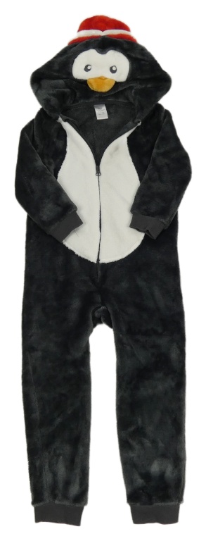 • Antracitovo-biela chlpatá kombinéza s kapucí - tučňák