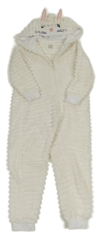 Biela plyšová rebrovaná kombinéza s kapucí - králik John Lewis