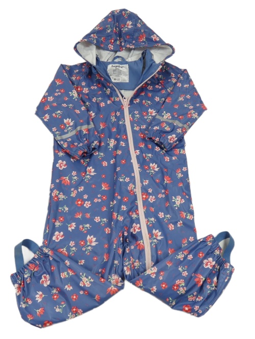 Modrá kvetovaná nepromokavá kombinéza s kapucňou Lupilu