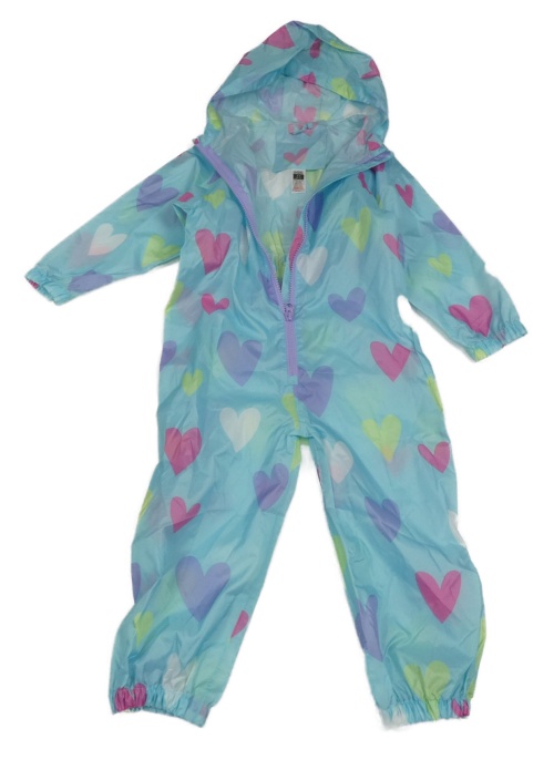 Svetlomodrá šušťáková nepromokavá kombinéza so srdiečkami a kapucňou Dunnes
