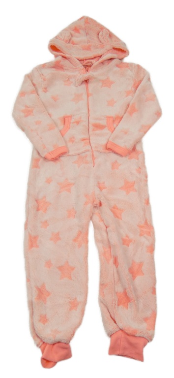 Neónově korálová plyšová kombinéza s hviezdami a kapucňou Kiki&Koko