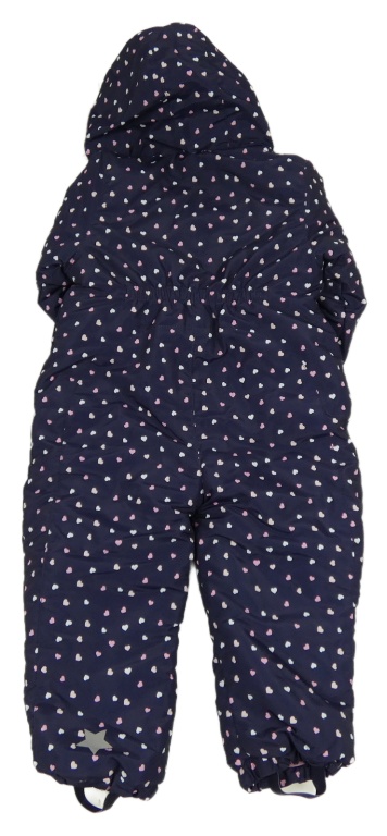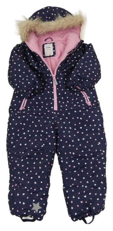 Tmavomodrá šušťáková zimná kombinéza so srdiečkami a kapucňou Sinsay