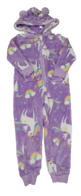 Fialová plyšová kombinéza s jednorožcami a kapucňou F&F