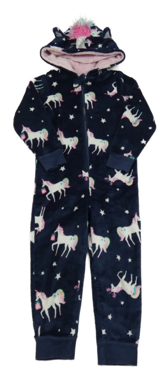 Tmavomodrá plyšová kombinéza s jednorožcami a kapucňou Matalan