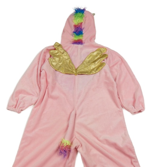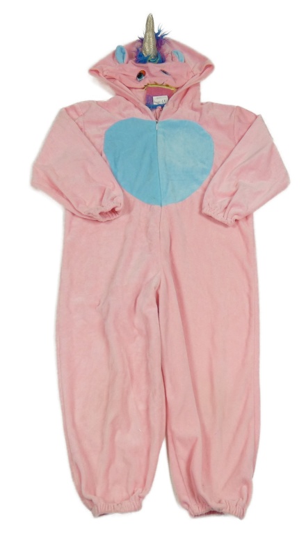 Svetloružová plyšová kombinéza s kapucí - jednorožec