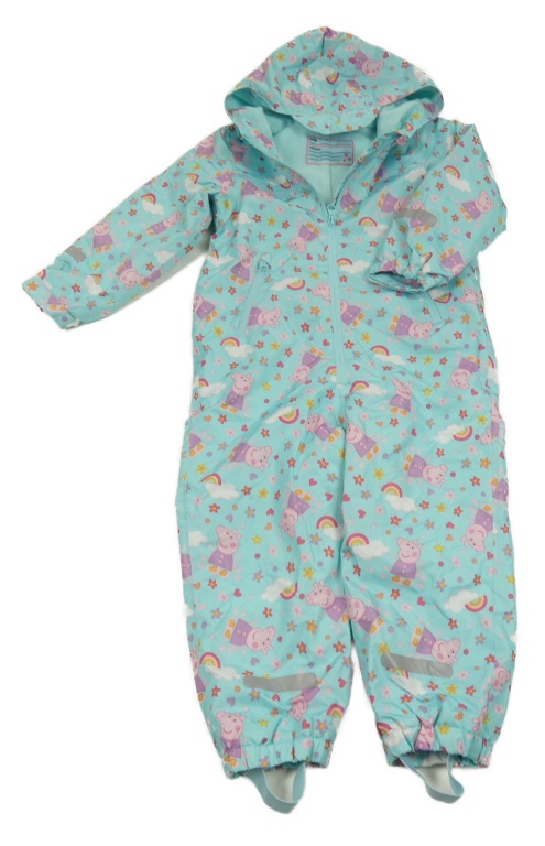 Svetlomodrá šušťáková zateplená kombinéza s Peppou a kapucňou