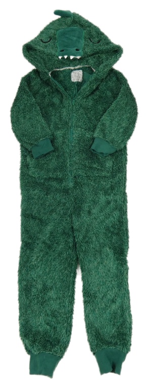 Zelená chlpatá kombinéza s kapucí - krokodíl Tu