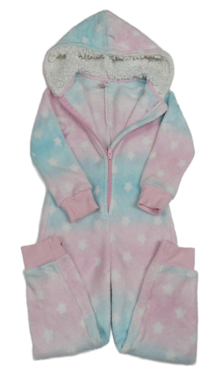 Modro-ružová pylšová kombinéza s hviezdami a kapucňou Peacocks