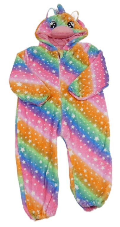 Farebná pruhovaná chlpatá kombinéza s hviezdami a kapucí - jednorožec