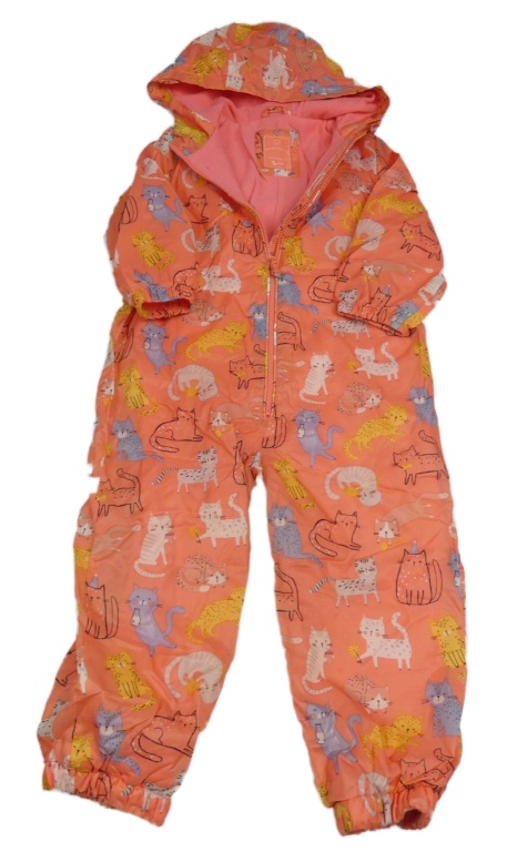 Lososová šušťáková jesenná kombinéza s kočičkami a kapucňou Tu