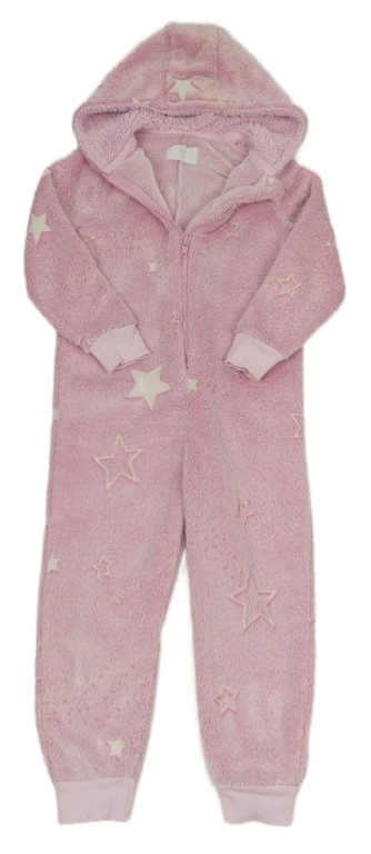 Ružová chlpatá kombinéza s hviezdami a kapucňou