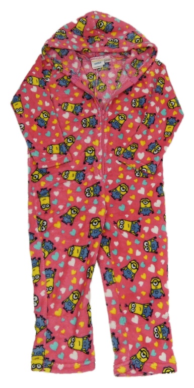 Ružová chlpatá kombinéza s Mimoni a kapucňou