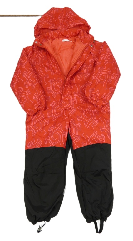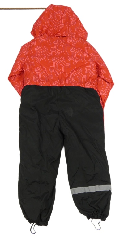 • Červeno-vzorovano-čierna šušťáková zimná kombinéza s kapucňou