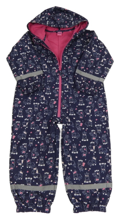 Tmavomodrá softshellová kombinéza s jednorožcami a kapucňou X-mail