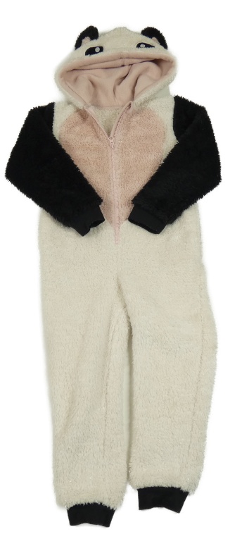 Bielo-ružovo-čierna chlpatá kombinéza s kapucí- panda Nutmeg