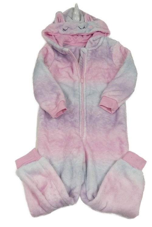 Svetloružová -belasá plyšová kombinéza s kapucí - jednorožec George